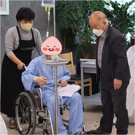 봉사자분과 환자분 모두 행복한 시간입니다.
